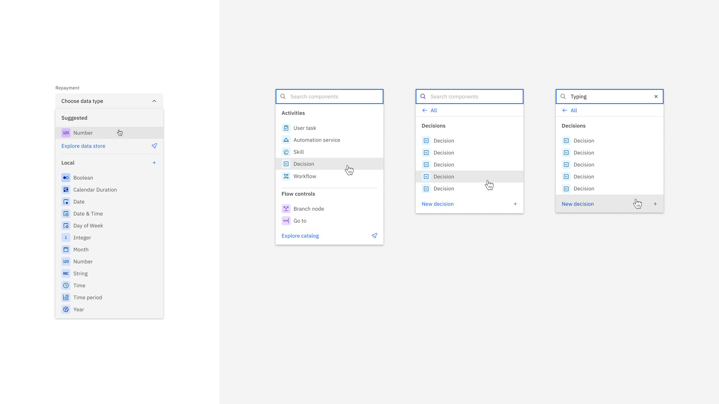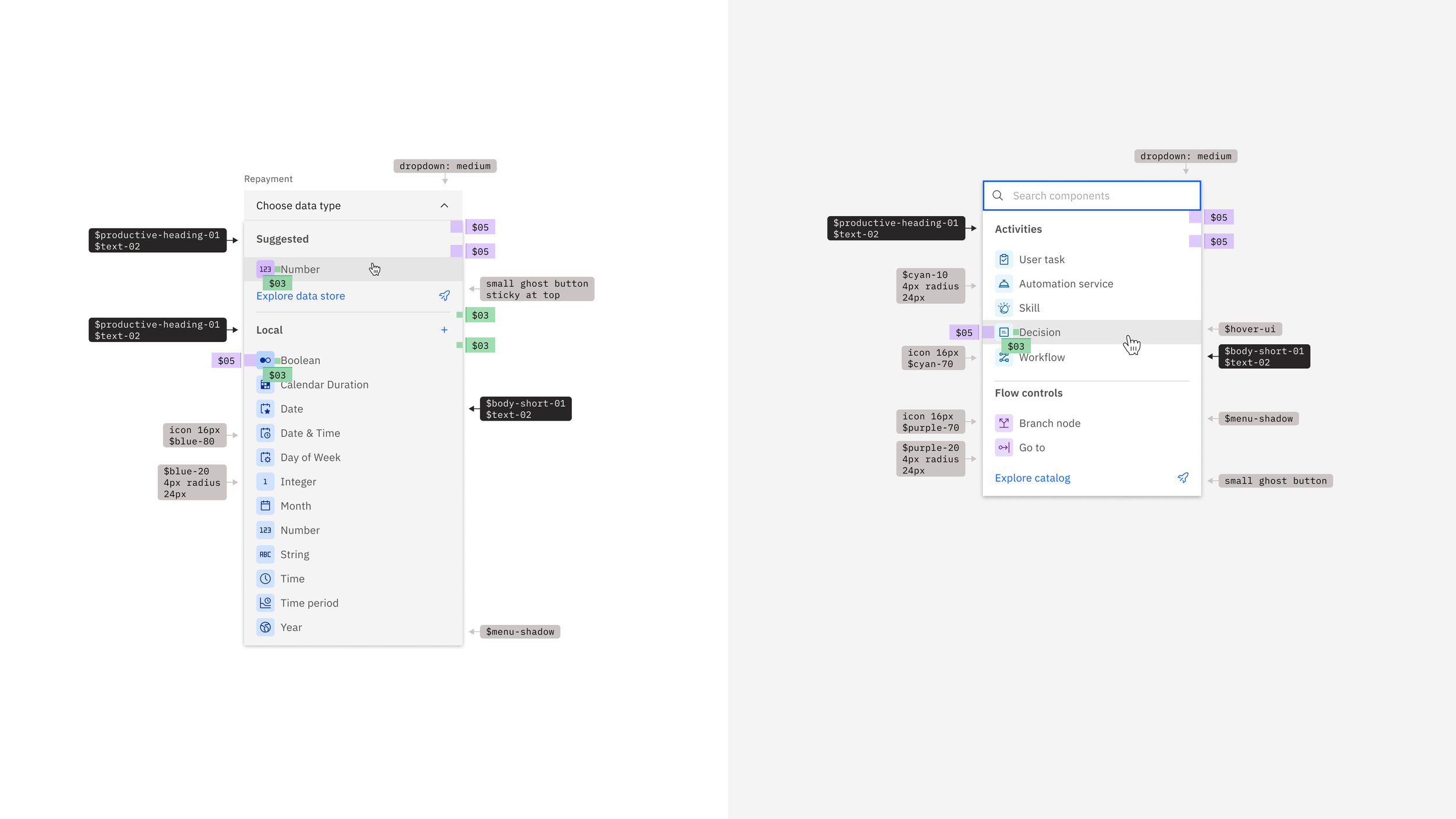 Prototypes, Exploration, Scenarios, Playbacks, Figma Components and Asset Library, Development specs, Scrum, Playbacks